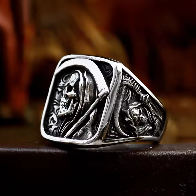 O Anel Ceifador da Morte é uma peça única, esculpida à mão com detalhes exclusivos.